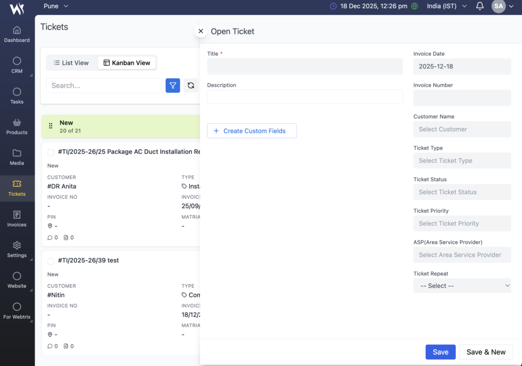 Absolutely. Webtrix24 CRM integrates with WhatsApp so you can send messages, invoices, and reminders directly to customers. It also supports GST-compliant invoicing with automatic tax calculations and payment tracking, making it ideal for Indian businesses.